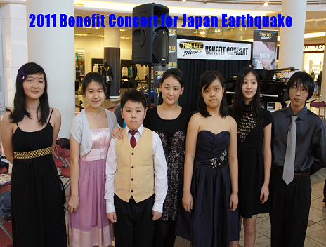2011年4月2日,加拿大红十字协会和Tomlee琴行在Aberdeen Center主办了"援助日本,赈灾义演"钢琴音乐会,肖老师带领学生Alex Chen, Amber(Qi Wei) Li,Yifu Li, Lucy Li,Jiaxu Chang积极参加了这次义演。学生们用优美的琴声奉献了自己的爱心和祝福, 希望能够早日战胜这场灾难。