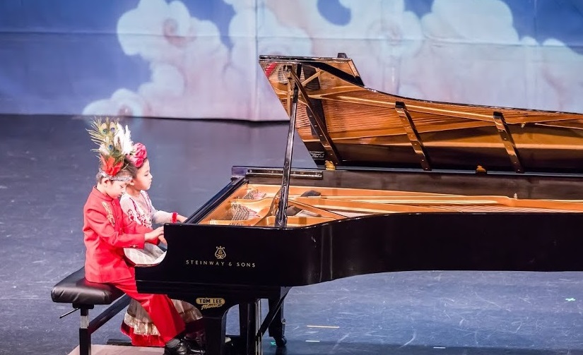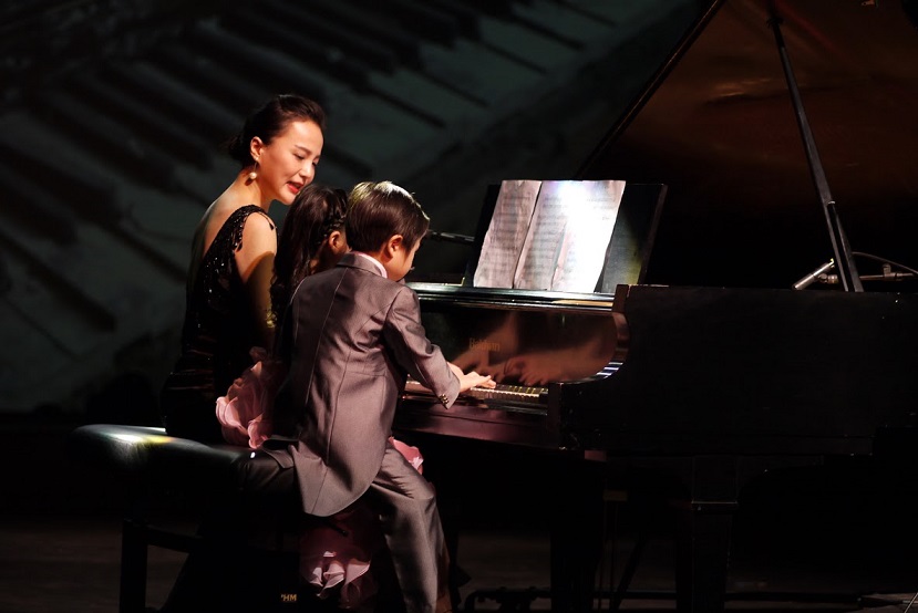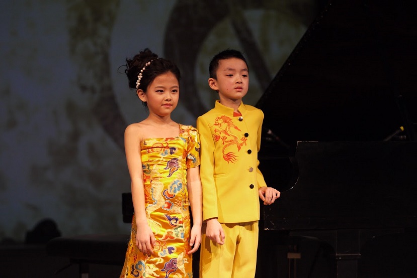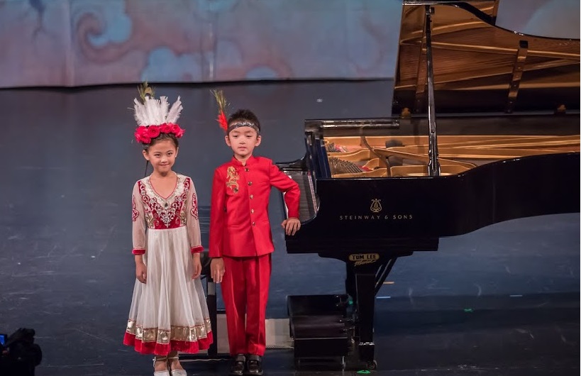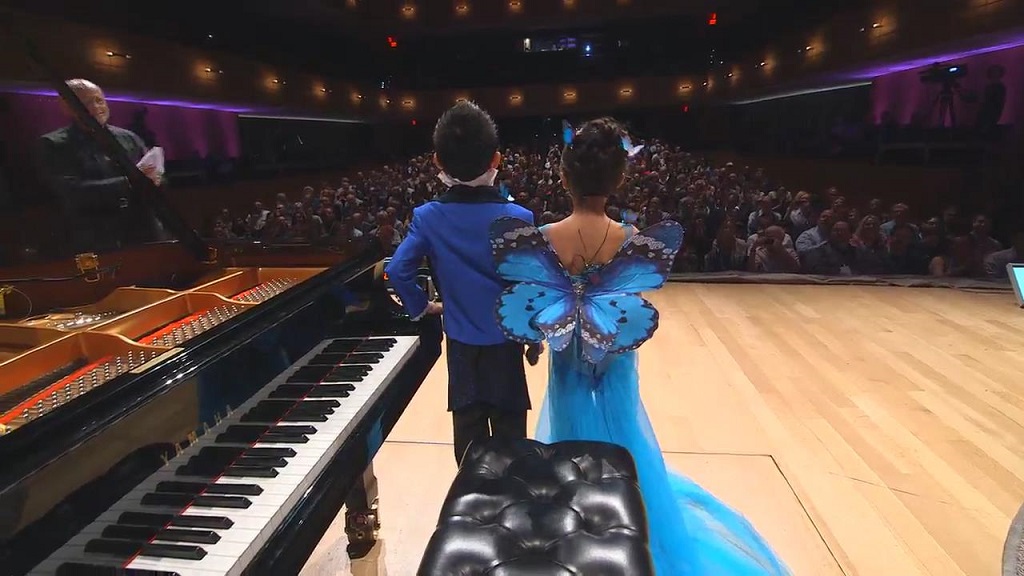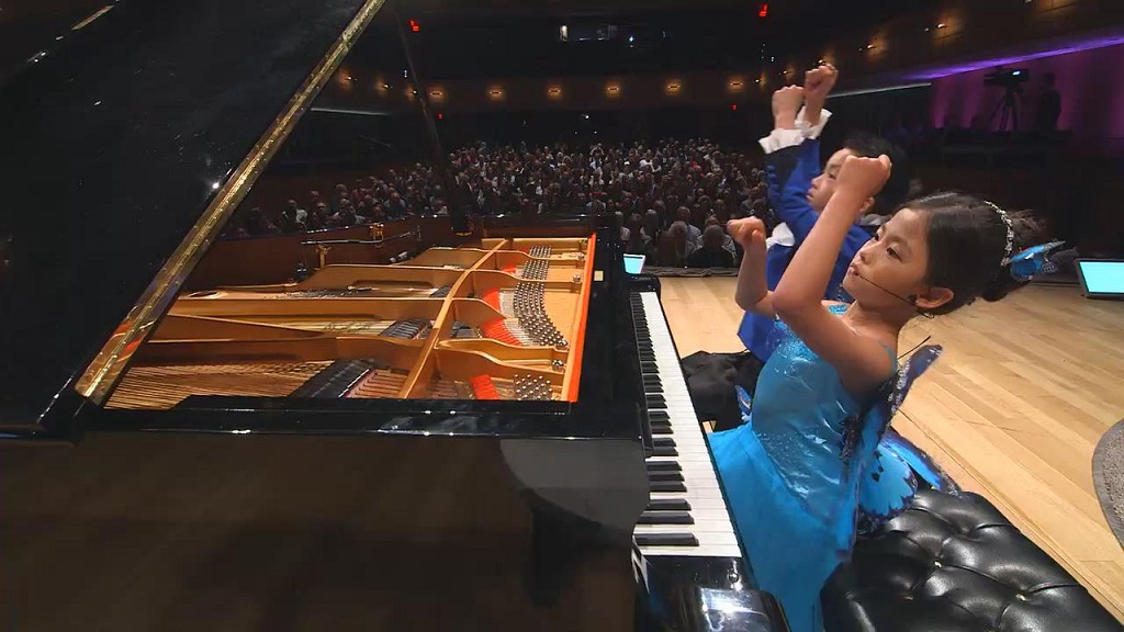5岁的杰杰(Chengjie Zhou)和Sunny Chen与钢琴家一起合作