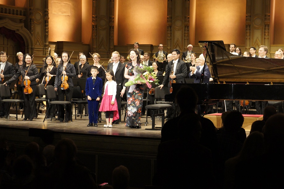 2015年5月11日,世界顶尖钢琴家Angela Hewitt 安吉拉.休伊特给我们的学生Ray Zhang张睿宏上了一堂精彩的大师课。晚上,Ray Zhang张睿宏和Xinyi Wang 王馨仪现场欣赏了Angela精彩的音乐会,为这位钢琴家献上了鲜花。