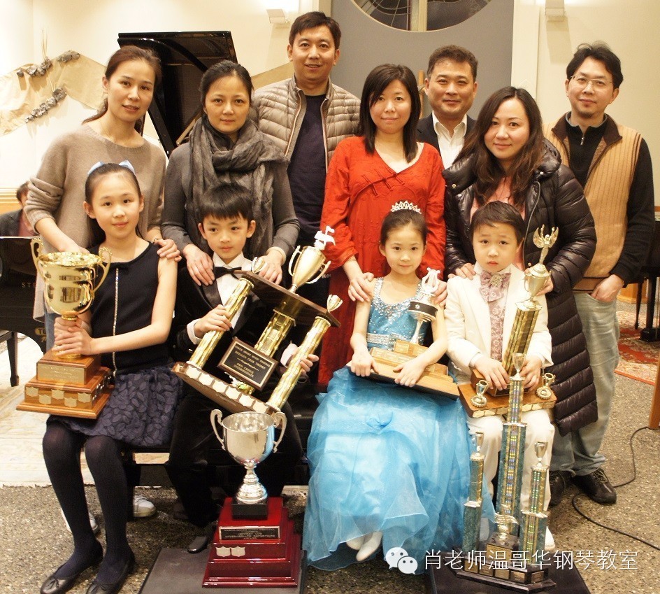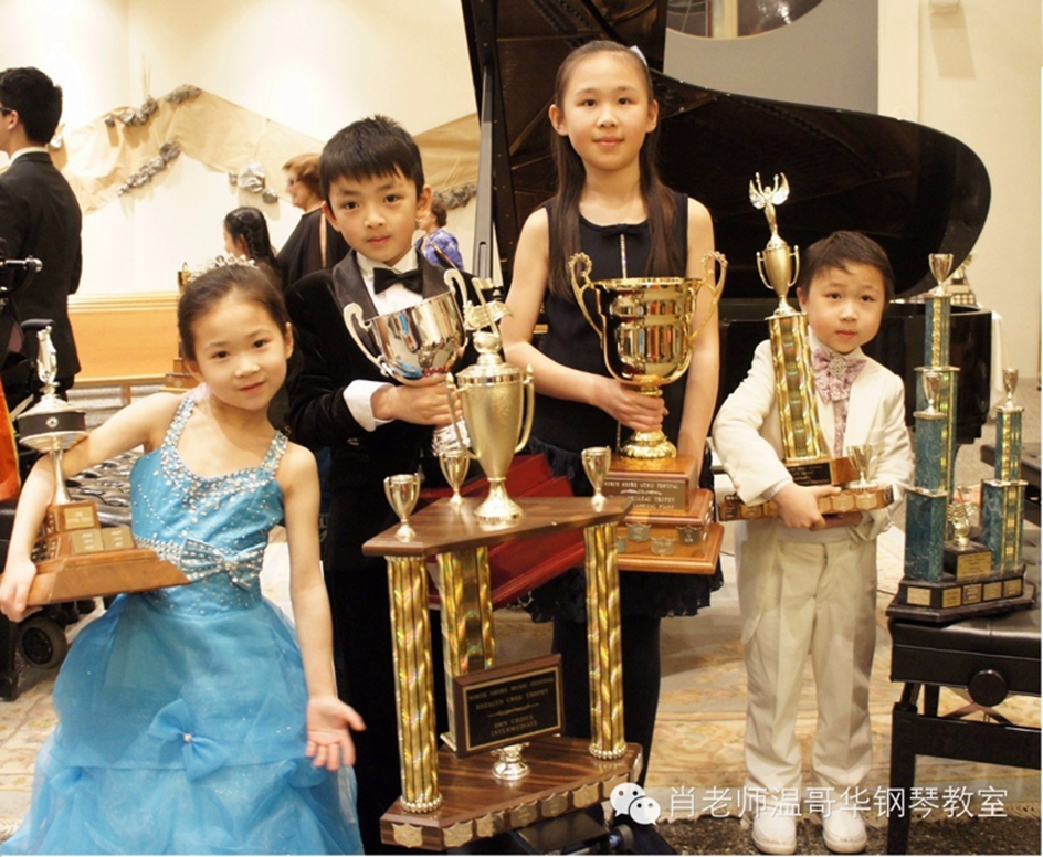 Jiaxu Chang获得国际Music Talent比赛第1名 2012年11月,13岁的Jiaxu Chang在美国国际Music Talent比赛中获得第1名,并获得组委会颁发的最高奖牌,在所有参加比赛的20多个国家选手中,她是唯一来自加拿大的钢琴获奖选手。11月26日在纽约卡内基音乐厅参加了颁奖演出。温哥华学校局VSB,Point Grey学校对Jiaxu (Maggie) Chang的获奖喜讯进行了报导。点击进入详细内容 在2012年8月的RCM钢琴考级中,7名参加考级的学生都取得了优秀的成绩,其中:Chen (George) Wan获得5级95分,Jie (Jessica) Chen获得8级94分,Yixuan (Alicia) Hu获得4级93分,Lin Jie (Tina) Zhang获得8级91分,Phoebe Pang获得8级88分,Can (Sunny) Cui获得10级87分,Sharon Zheng获得10级86分,特此祝贺! 2012年加拿大全国音乐比赛(CMC) 在2012年CMC加拿大全国音乐比赛中,Richard Ranfei Wang 10岁在激烈的竞争中,成功通过市级和省级的比赛选拔,7月在多伦多参加了全国总决赛,以93分的好成绩获得第2名,并获得奖牌和奖学金。点击进入详细内容 在5月结束的CMTAC钢琴之星比赛中,肖老师的18名学生共获得29个奖杯,其中,Richard Ranfei Wang,Jiaxu Chang和Christina Wei获得3个奖杯,Richard Ranfei Wang以最高分获得YAMAHA大奖。