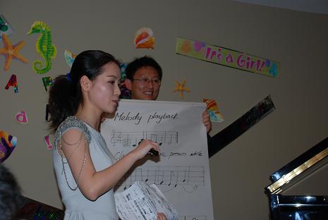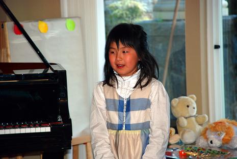 部分学生有幸参加了这次Party活动,孩子们不仅表演了自己的钢琴曲目,还分享了学习钢琴的经历和故事。在钢琴演出之后,进行了生动活泼的互动节目,。在乐理知识问答竞赛中,Rita老师和Elva老师精心准备的题目没有难倒孩子们,他们都能准确无误的答对,在寓教于乐的同时还考验了孩子的乐理水平。孩子们还积极踊跃的展示了各种才艺,例如:Maggie表演了中英文演讲, Alisa跳了一段Hiphop,Sharon和James 展示了自己的绘画作品,David、Christina、Anika等show了折纸技巧,小朋友们都争先恐后的展示自己,这些精彩的表演给大家留下非常深刻的印象。下面是照片集锦: